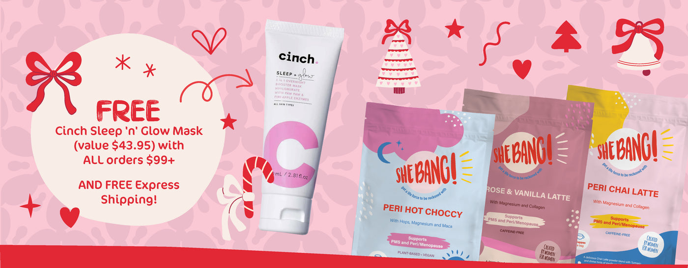 Expertly developed by SheBANG!'s Clinical Nutritionist, SheBANG!'s peri-busting Super Lattes and Peri Protein POWders will help soothe perimenopause symptoms that are wreaking havoc on your life.