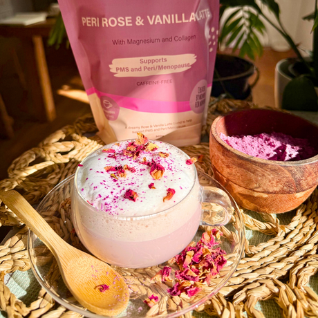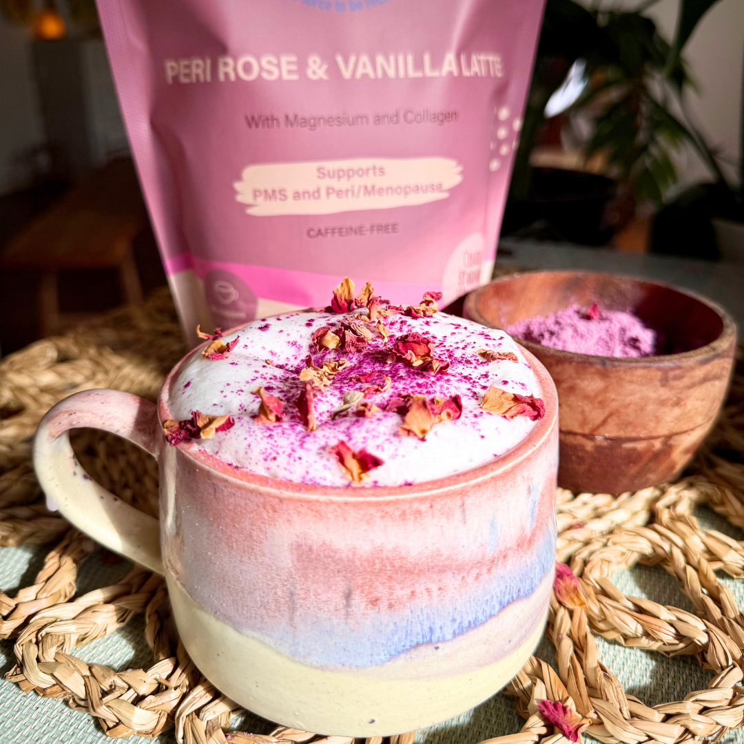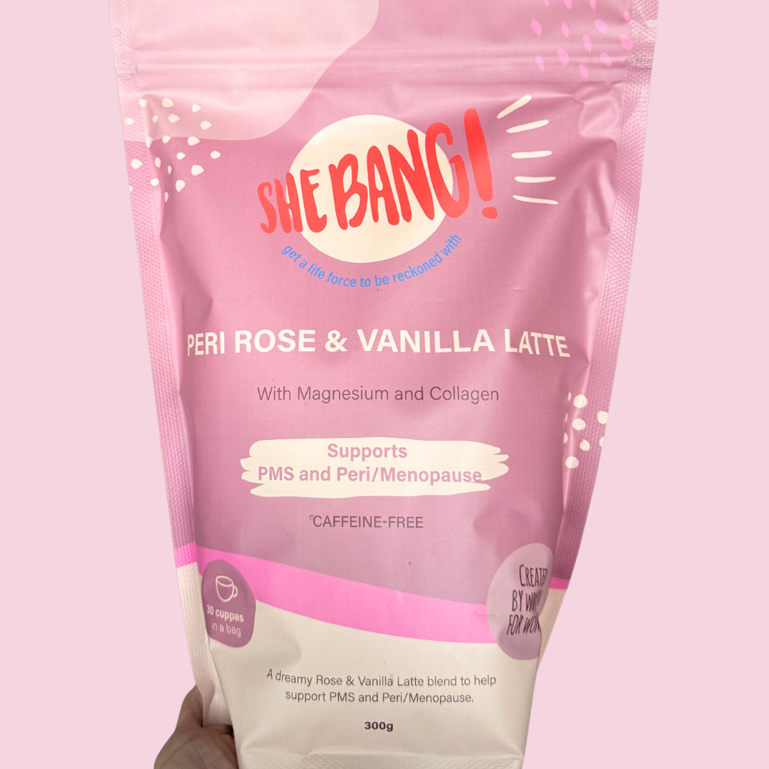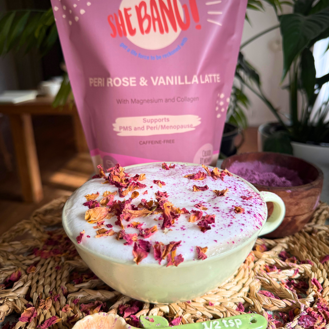 Loaded with Magnesium Glycinate and Collagen Peptides, our Peri Rose & Vanilla Latte is a delicate and dreamy functional latte blend created by our nutritionist specifically to help you feel the whole SheBANG! through the hormonal ups and downs of PMS, peri/menopause.