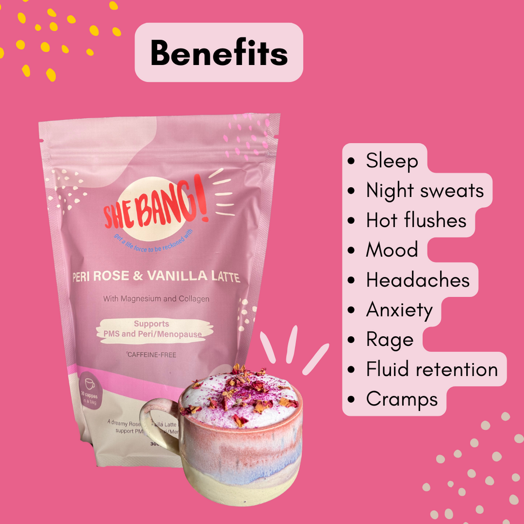 The benefits of the SheBANG! Peri Rose & Vanilla Latte can be enjoyed by all women (including pre and post-menopause) and family members.