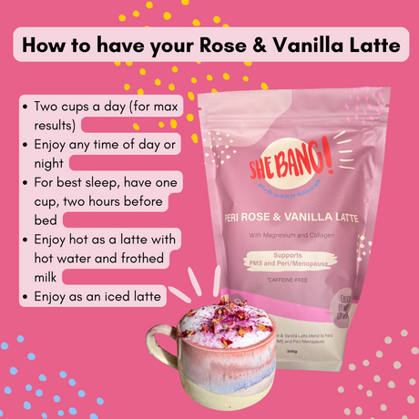 You can enjoy SheBANG! Peri Rose & Vanilla Latte at any time of day or night to enjoy all the peri-busting benefits.