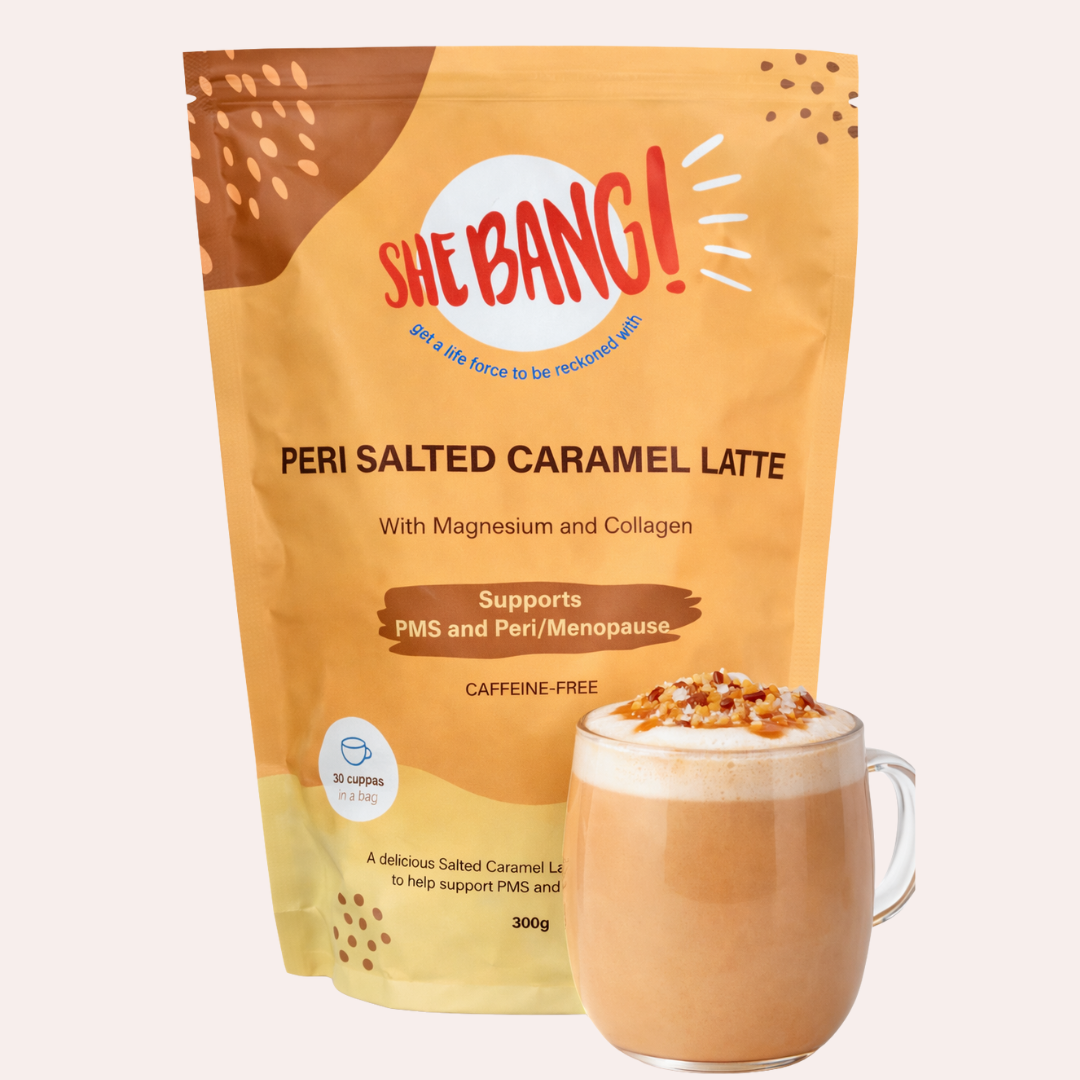 Loaded with Magnesium Glycinate and Collagen Peptides, our Peri Salted Caramel Latte is a functional latte blend created by our nutritionist specifically to help you feel the whole SheBANG! through all the hormonal ups and downs.